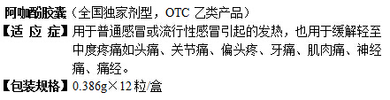 阿咖酚膠囊(全國獨家劑型,OTC乙類產品)