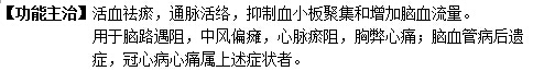 【功能主治】活血祛瘀,通脈活絡,抑制血小板聚集和增加腦血流量。