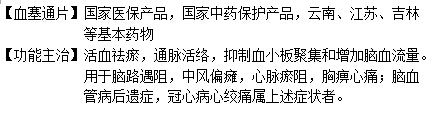 【功能主治】活血祛瘀,通脈活絡,抑制血小板聚集和增加腦血流量。