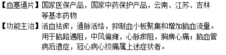【功能主治】活血祛瘀,通脈活絡,抑制血小板聚集和增加腦血流量。